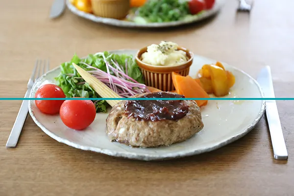 特に料理の撮影は、中央に配置してお皿の下に空白ができると浮いている感じになってしまいます。