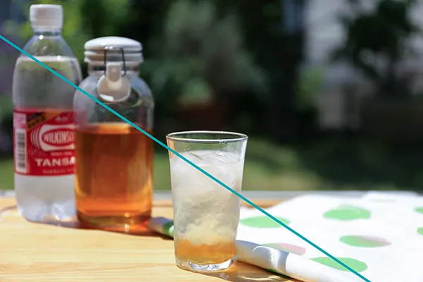 料理の場合も、先ほどのように横からのアングルで中央に配置すると、不安定な印象になってしまいます。