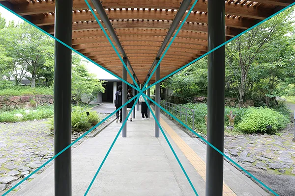 対角線に対して四隅から垂直線を引いてできる交点に被写体を配置する構図。