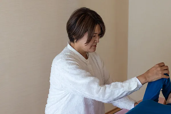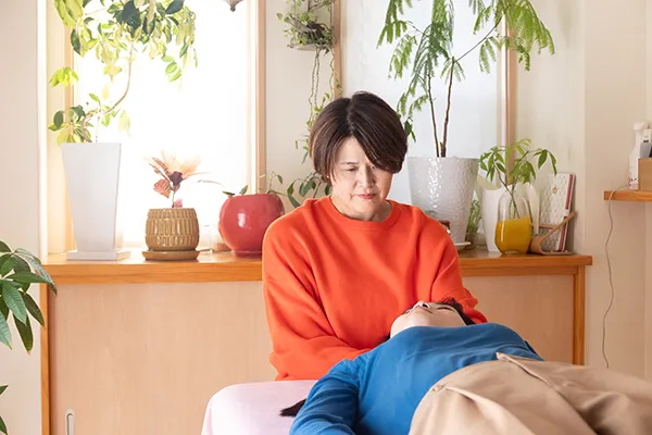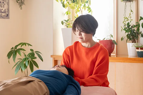 ミオンパシーという、筋肉の緊張をゆるめて身体の本来の柔らかさを導く整体。強くもんだりしないので、子どもさんでも安心して施術が受けられるそうです。