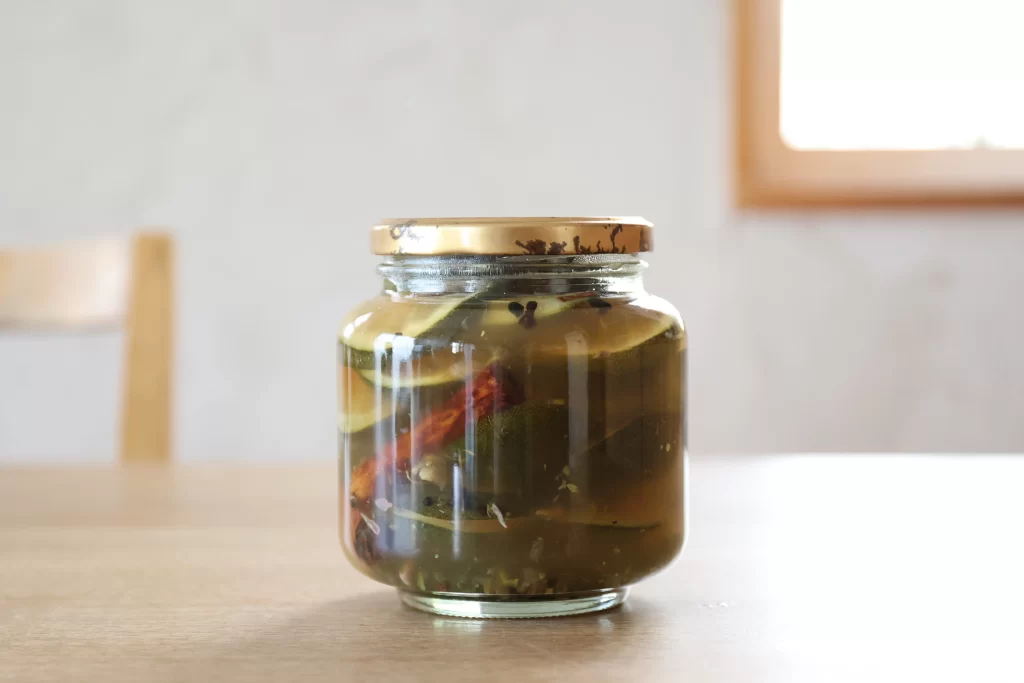 - 粗熱が取れたら瓶に移して冷蔵庫で半日寝かせる